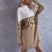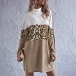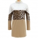 Fashion Contrast Color Leopard Spliced Long Sleeve Mock Neck Dress