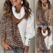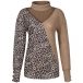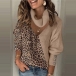 Fashion Contrast Color Leopard Spliced Long Sleeve V-neck Knit Top