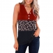 Fashion Contrast Color Leopard Spliced Sleeveless V-neck Top