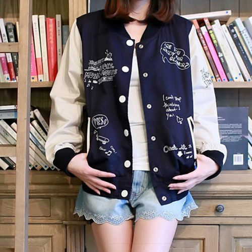 In your leisure and sports time,this coat is obviously a perfect choice for you. It features contrast color style,fashion and fresh. With letters print pattern,long sleeve,stand collar and single-breasted design. Show your youth and vitality through this coat.