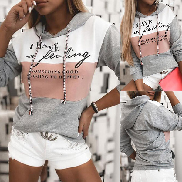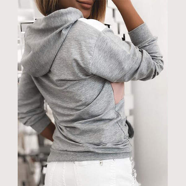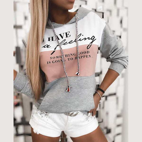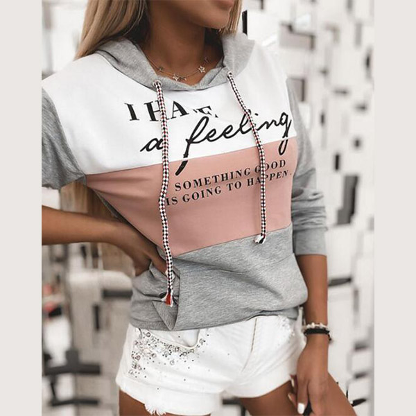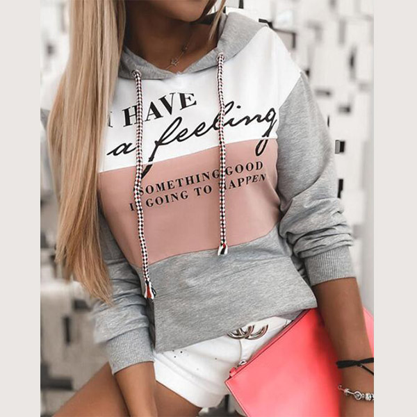 Fashion Contrast Color Letters Printed Long Sleeve Hooded Sweatshirt