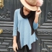 Fashion Contrast Color Long Sleeve Cowl Neck Irregular Hem T-shirt