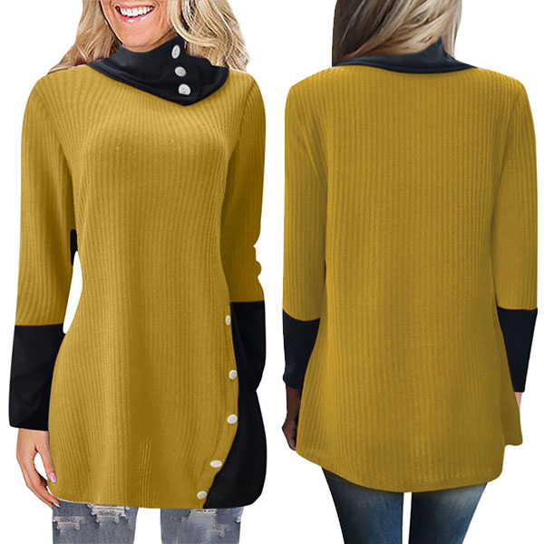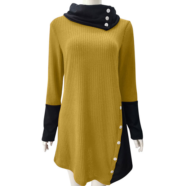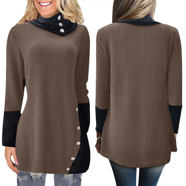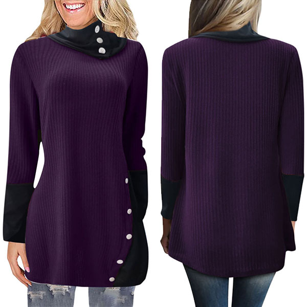You can trust in this wonderful top to update your daily style. Contrast color style,the unique cowl neck and side-button design make this piece look more attractive,while its soft,breathable fabric can ensure you a comfortable day. When the days get a little cold,you can make your eyes focused on this long sleeve top.