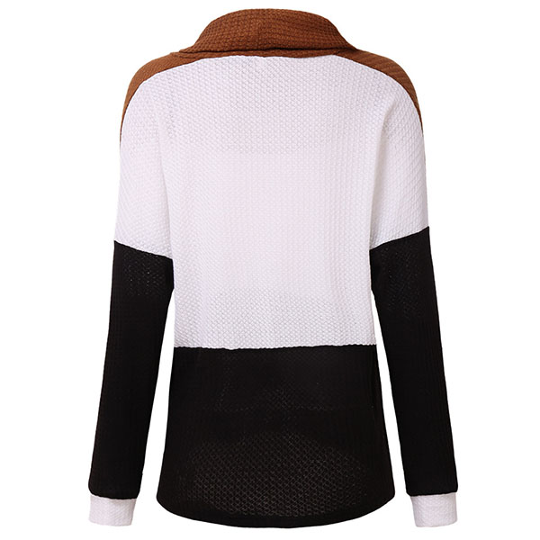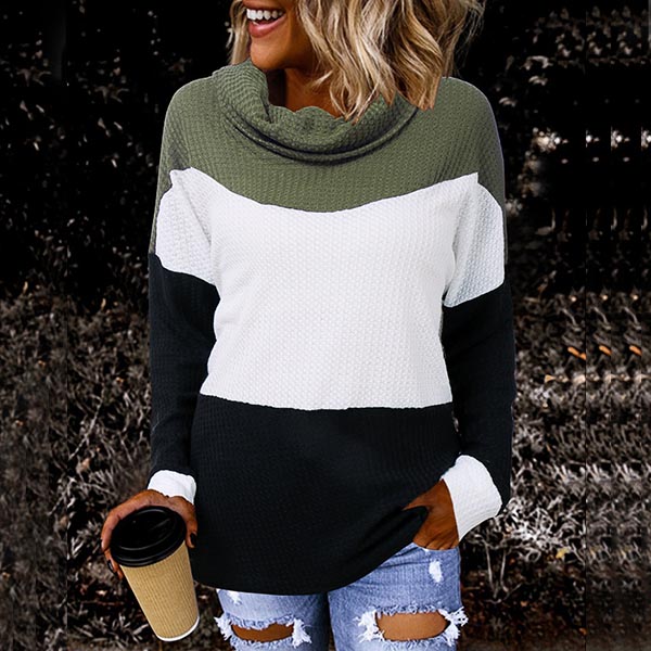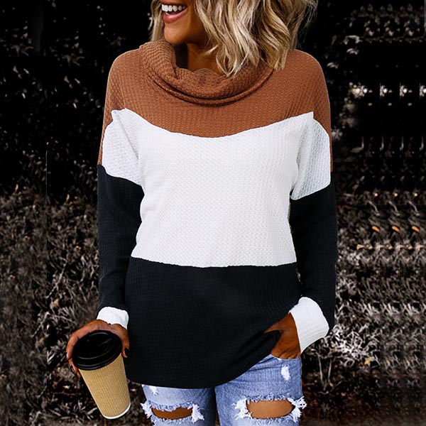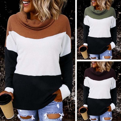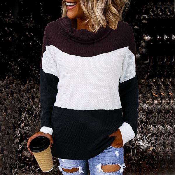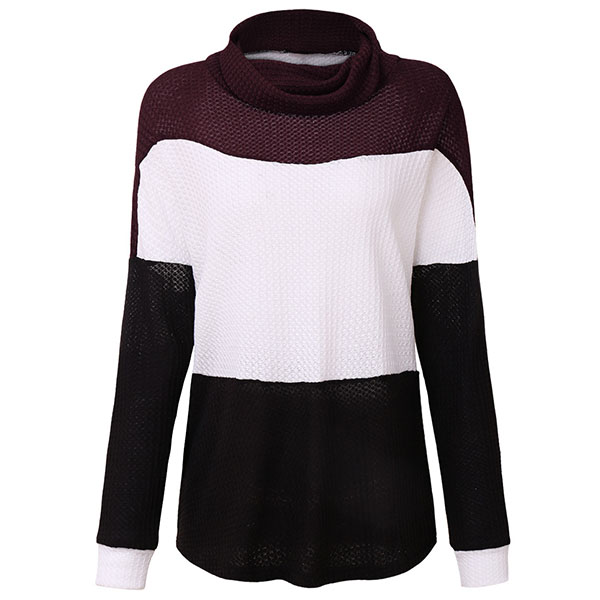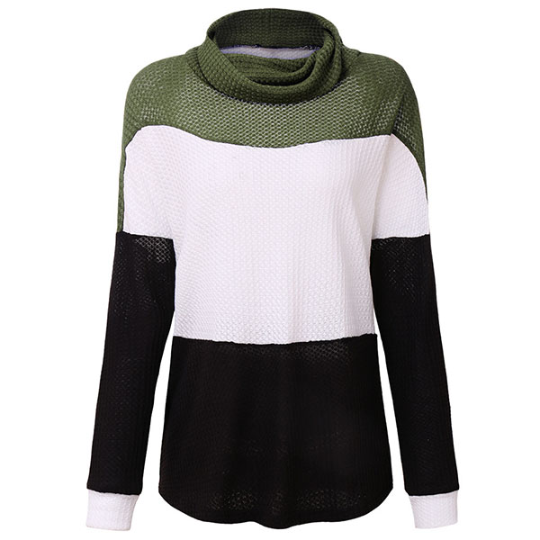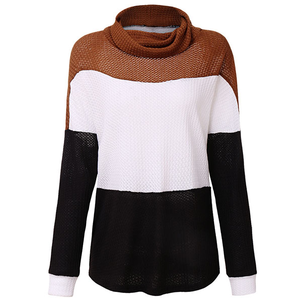 Fashion Contrast Color Long Sleeve Cowl Neck Sweater