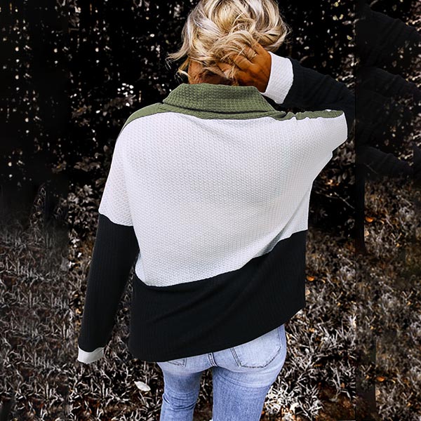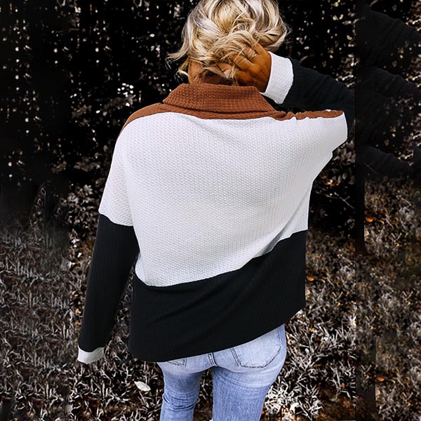 On a cold day,you can trust in this sweater to keep you warm and comfortable while it maintains your style. Contrast color design makes it look stylish and popular,while the cowl neck design will further enhance its charm. Another design highlight is that it can offer you different matching styles. You can add a sweater necklace to boost your entire charm.