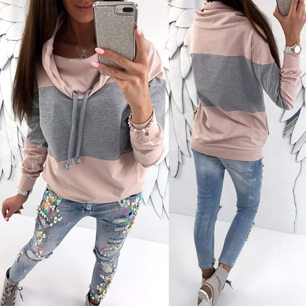 When the autumn days come,this long sleeve sweatshirt can be your wise choice. Contrast color design makes this piece look more stylish and attractive,while the cowl neck design will further enhance its entire charm. Try to match with a jeans o start your wonderful day.