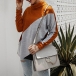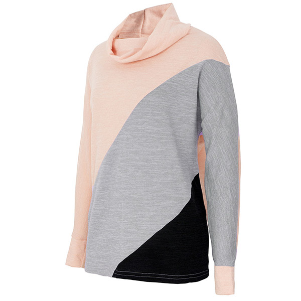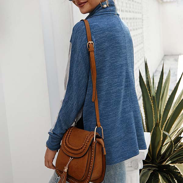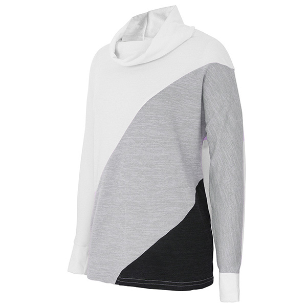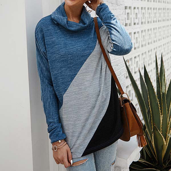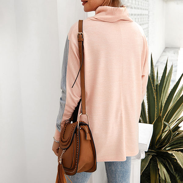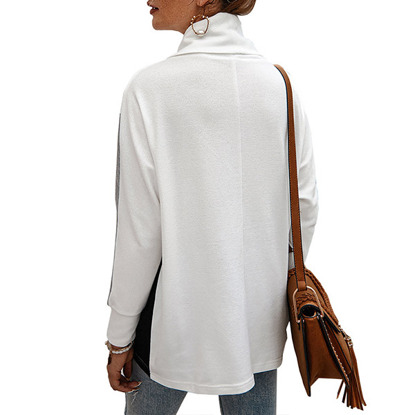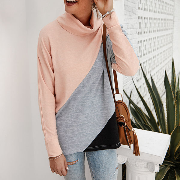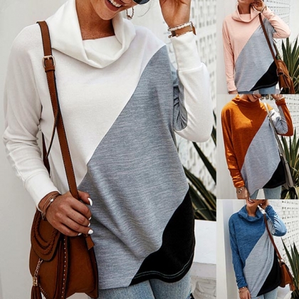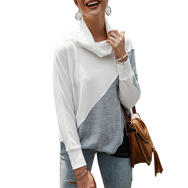 Fashion Contrast Color Long Sleeve Cowl Neck T-shirt
