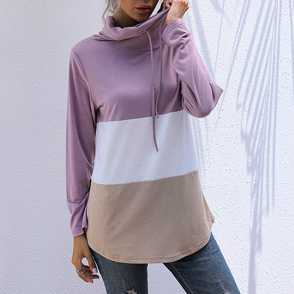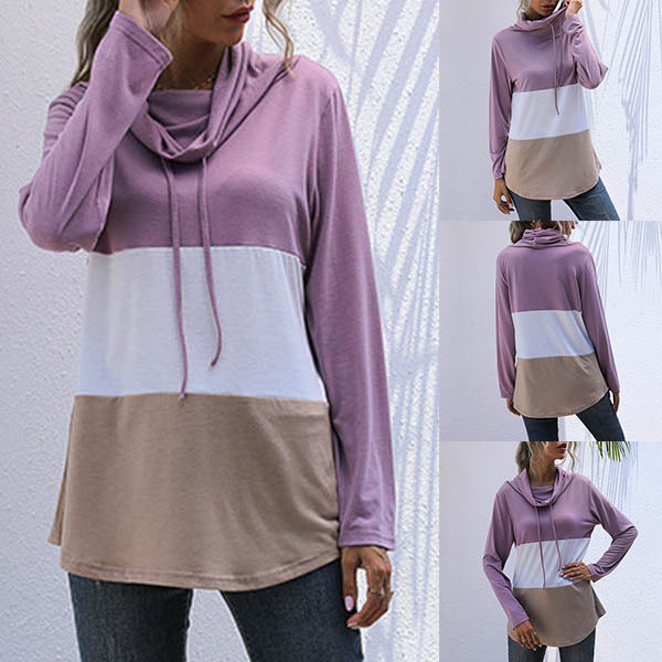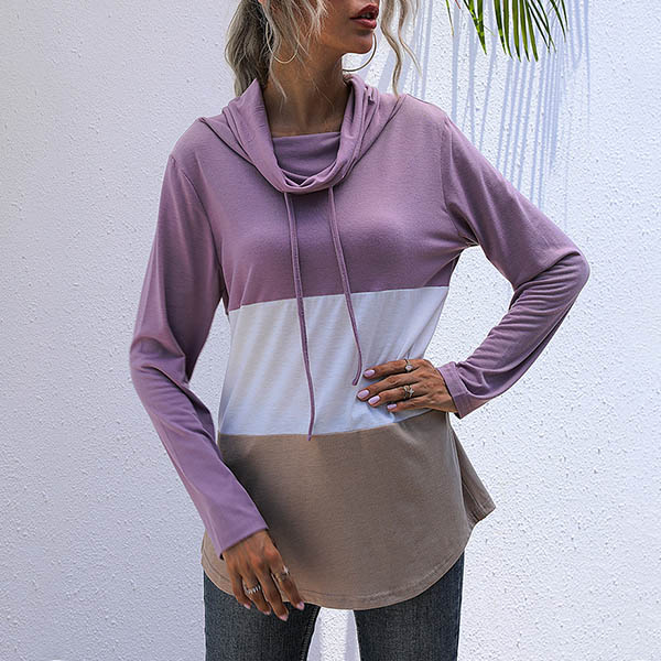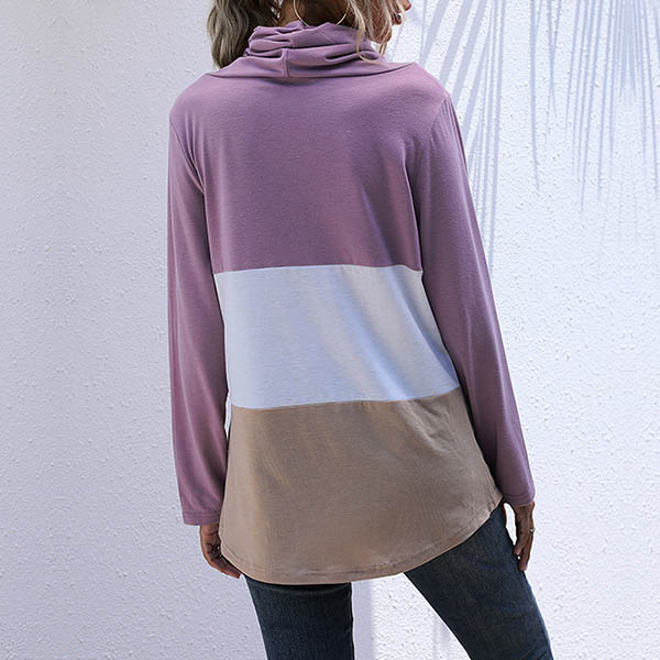 Fashion Contrast Color Long Sleeve Cowl Neck Top