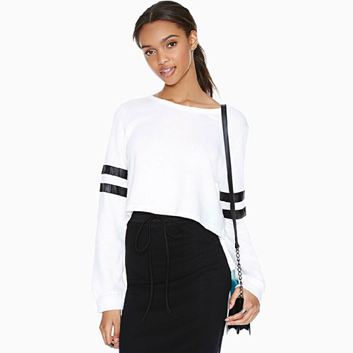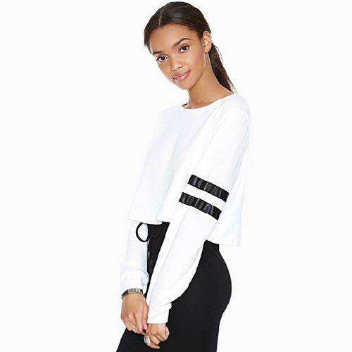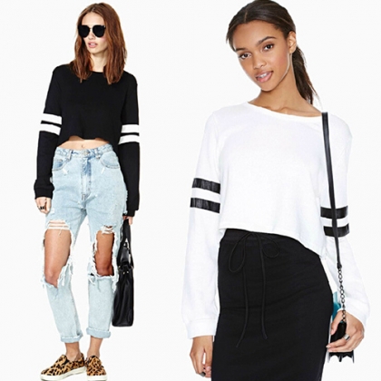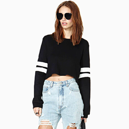 round neck and dew navel design,sexy and stylish. Pair it with your high-waist pants.