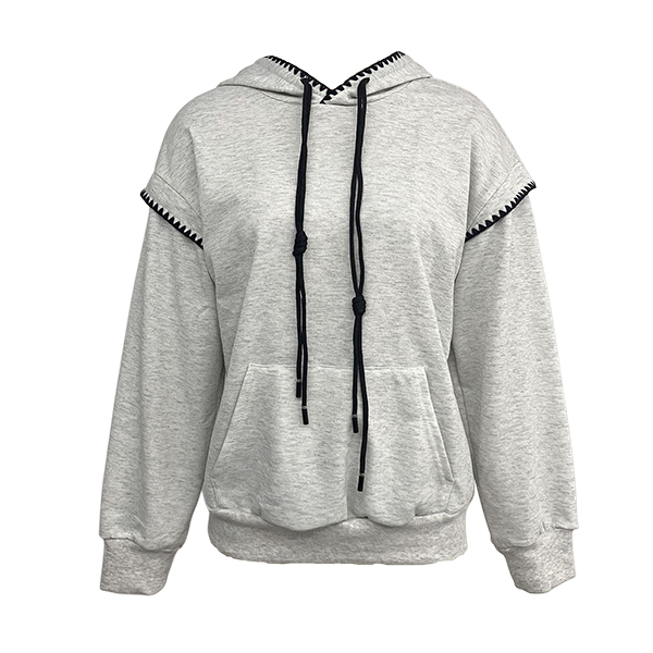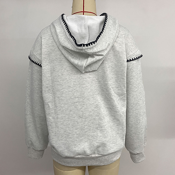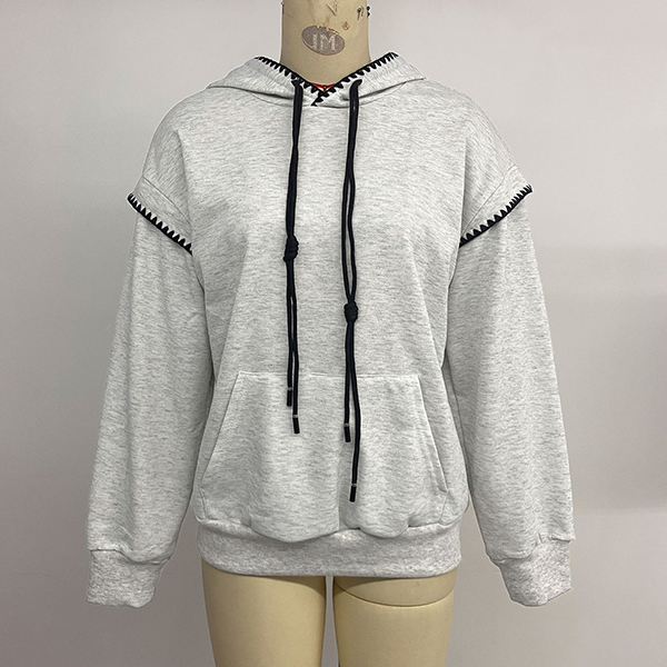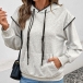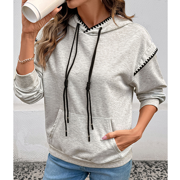 Fashion Contrast Color Long Sleeve Drawstring Hooded Sweatshirt
