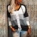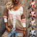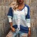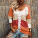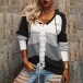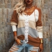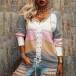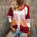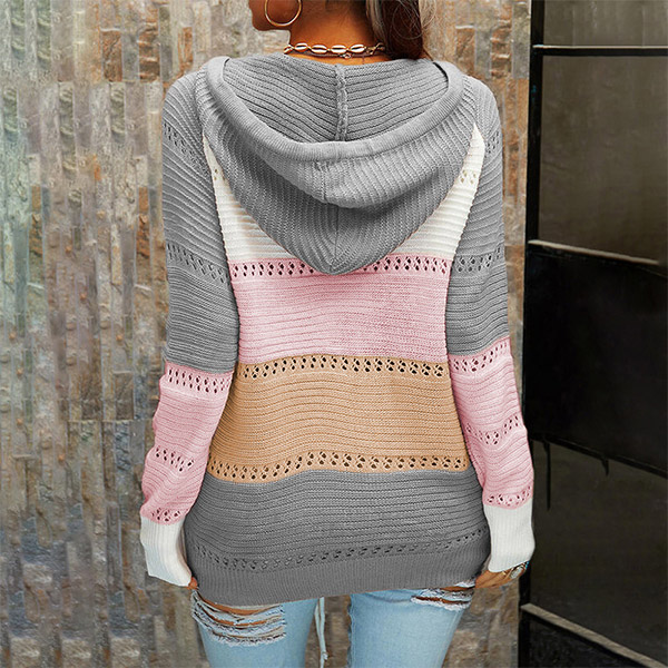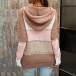 Fashion Contrast Color Long Sleeve Front Lace-up Hooded Knit Top