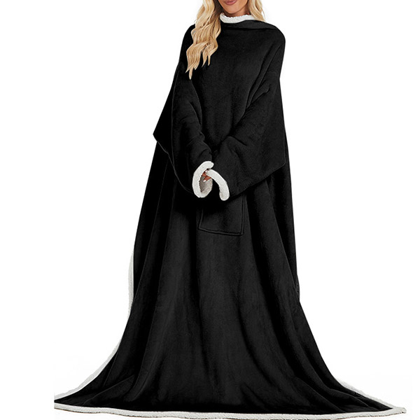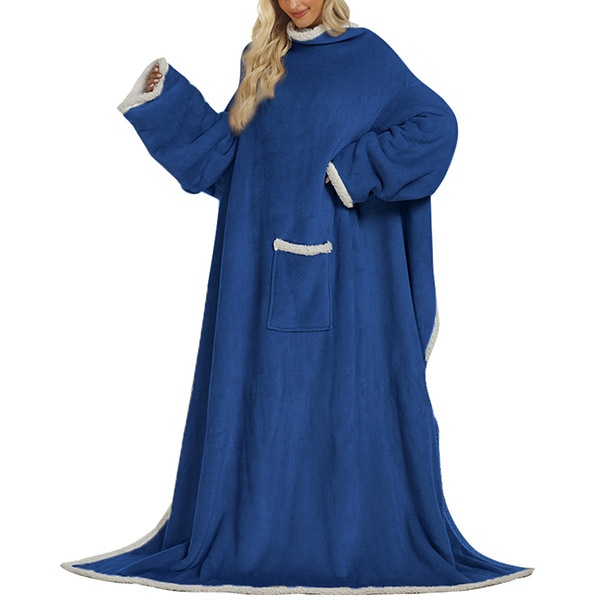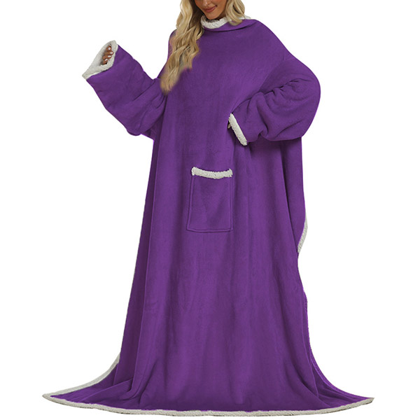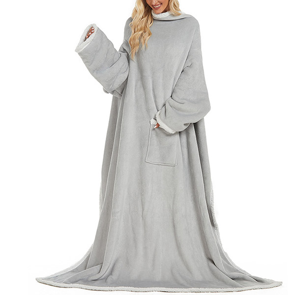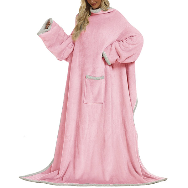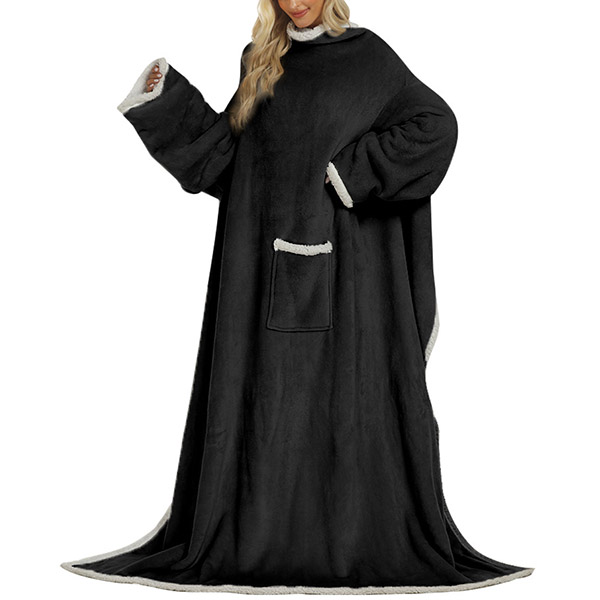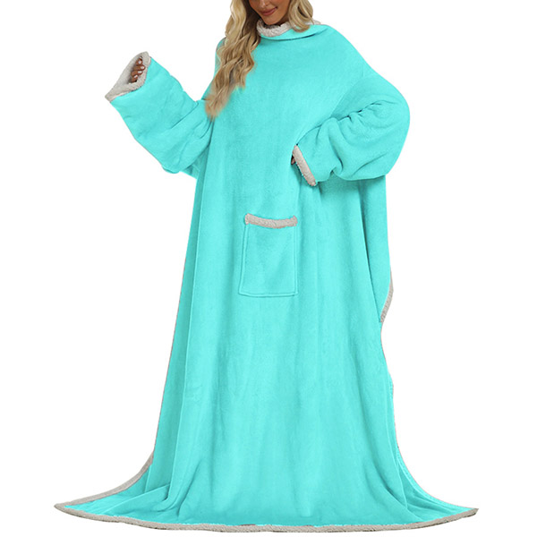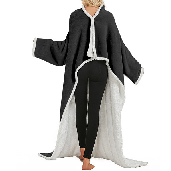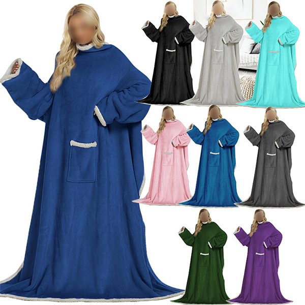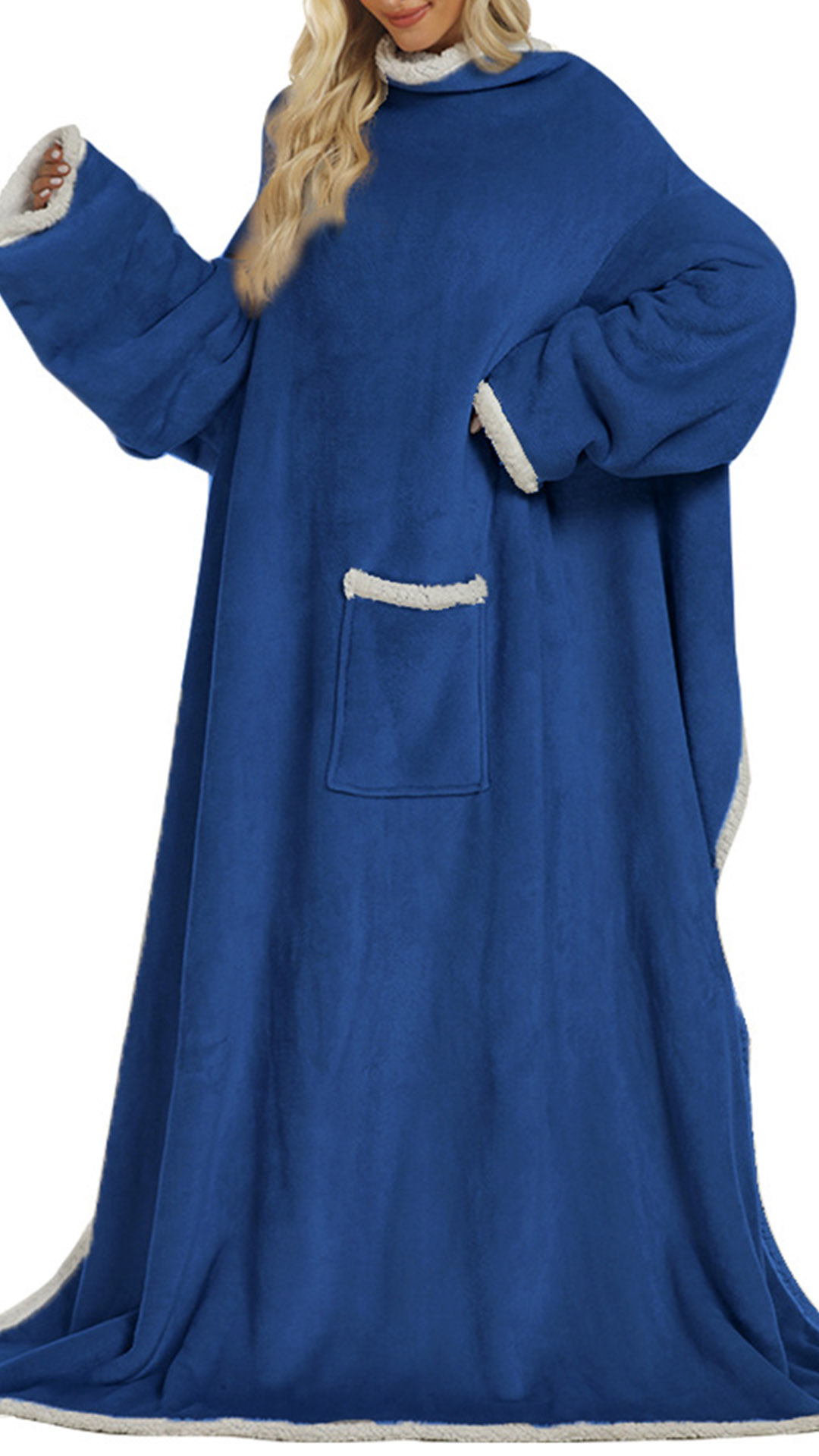 Fashion Contrast Color Long Sleeve Front-pocket High-low Hemline Faux Lamb Wool TV Blanket