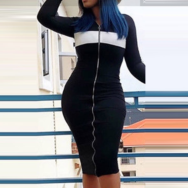 Your wardrobe will feel new and refreshing with this long sleeve dress! Contrast color design makes