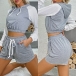 Fashion Contrast Color Long Sleeve Hooded Crop Top + Shorts Two-piece Set