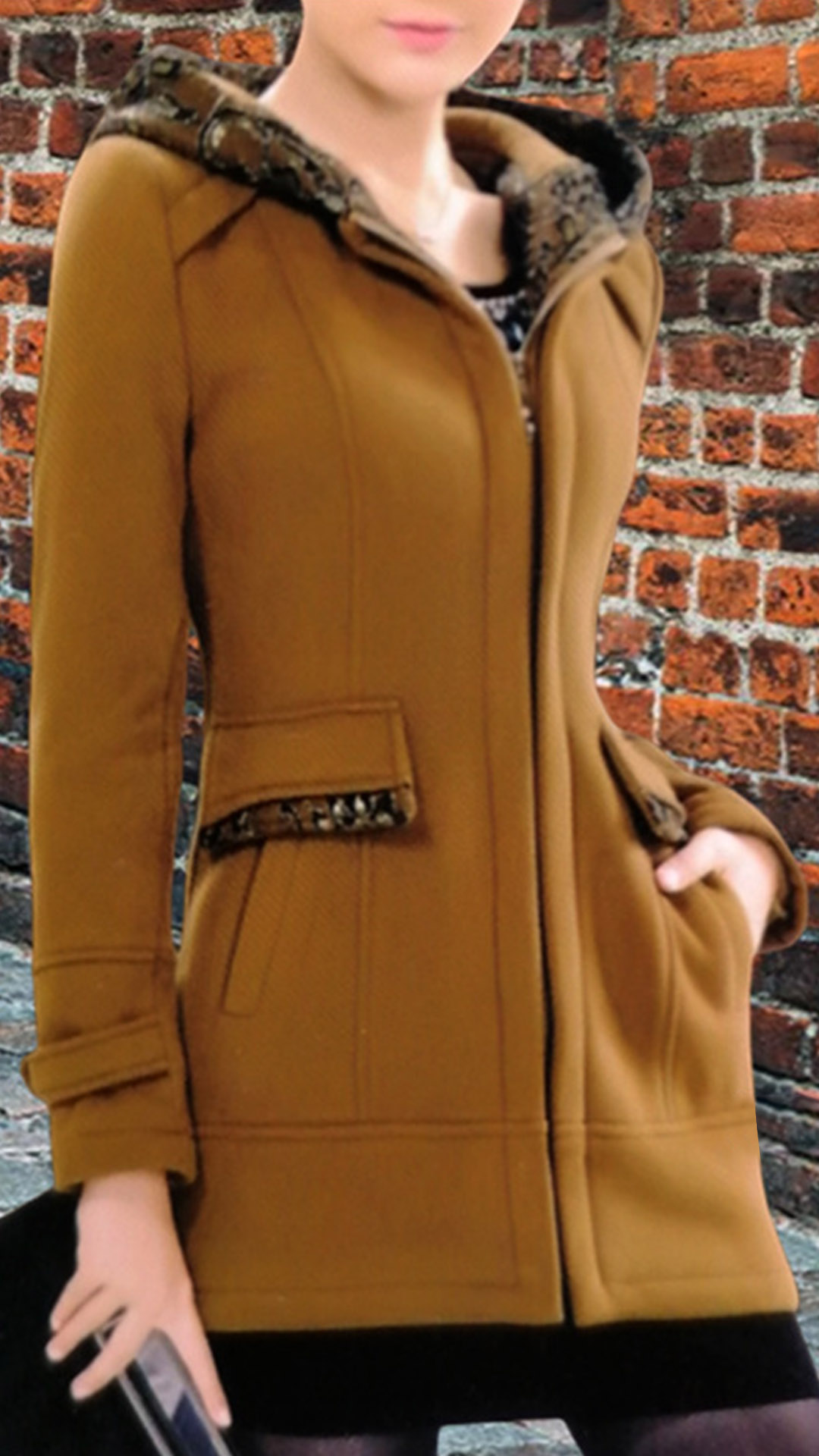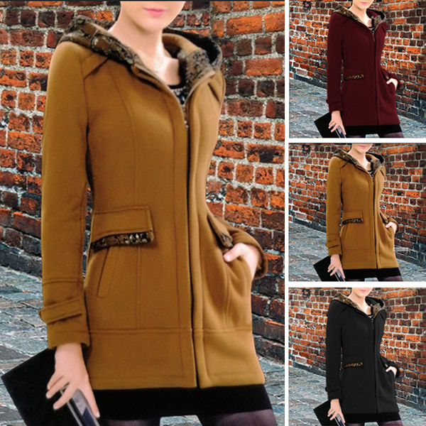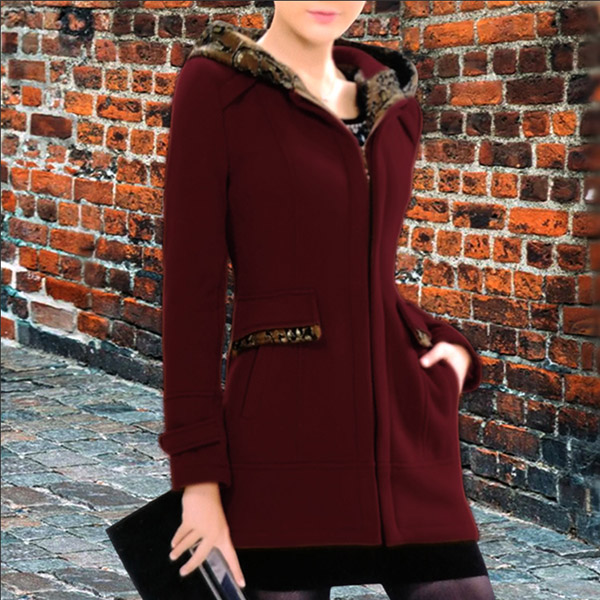 Fashion Contrast Color Long Sleeve Hooded Duffle Jacket for Women