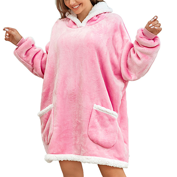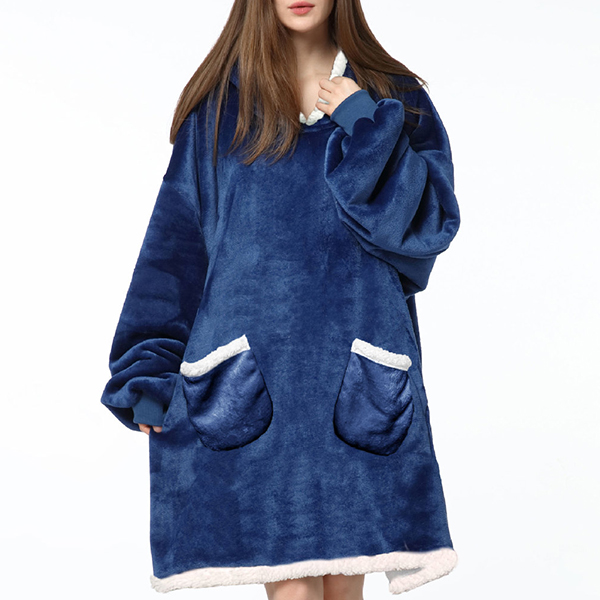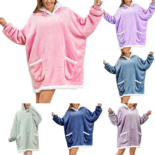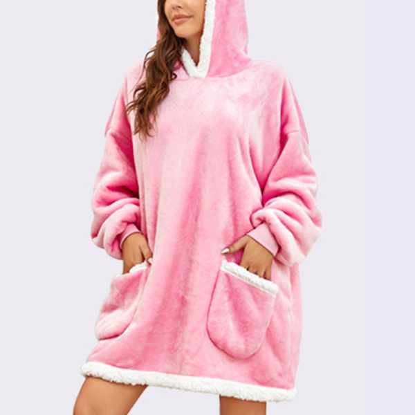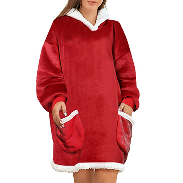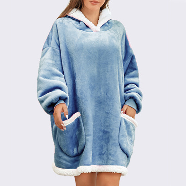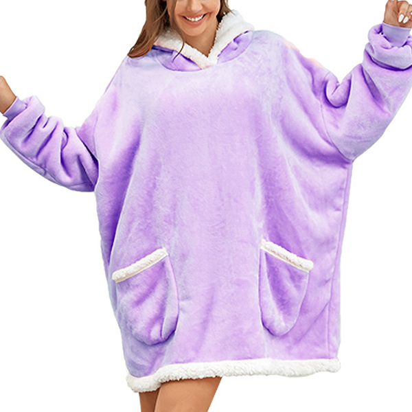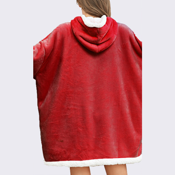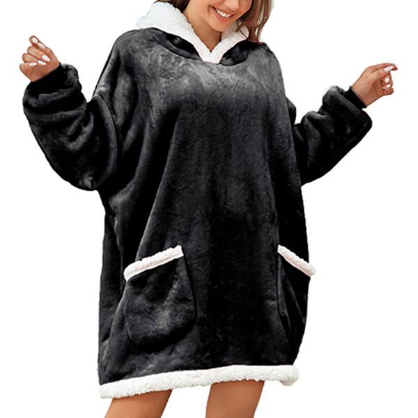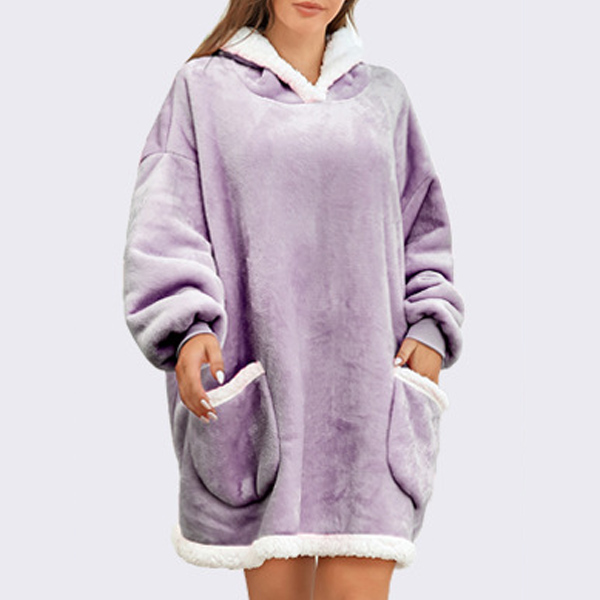 This cozy hoodie is perfect for a lazy day spent lounging around the house. The soft, faux lamb wool is incredibly comfortable and will keep you warm all day long. The contrast colors add a bit of visual interest, and the front pocket is perfect for holding your TV remote or your favorite snacks.