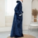 During your home time in these chilly winter days,this faux lamb wool blanket would be your choice to keep you feeling warm. It is finished with long sleeve,front-pocket, hooded silhouette, side slit and self-tie waist design, this piece is perfect fit for your watching TV time or reading at home.