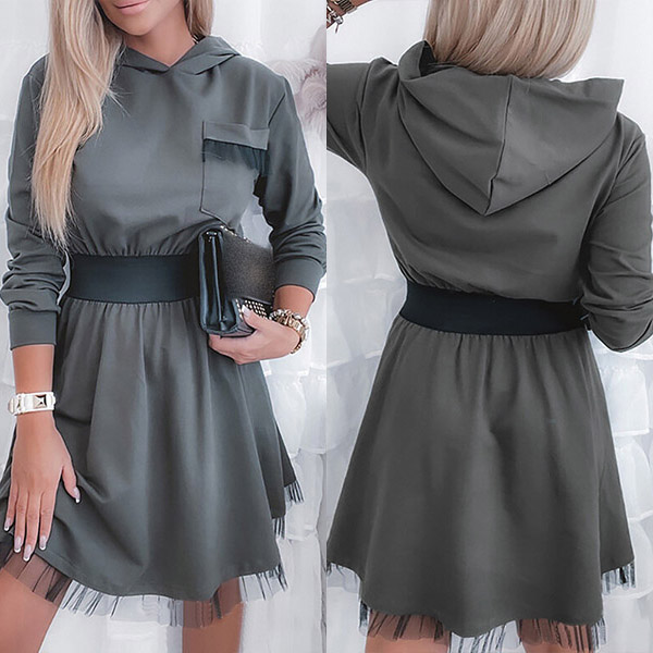For your busy workdays when you have no time to think about what to wear,then this easy-to-wear dress can be your wise choice. Contrast color style,with long sleeve,hooded silhouette and gauze spliced hem design,this dress definitely can give you a cozy yet stylish daily style.
