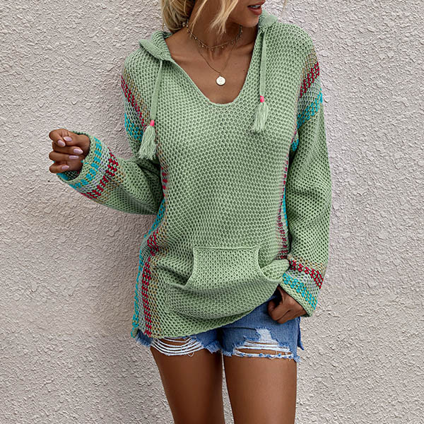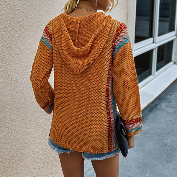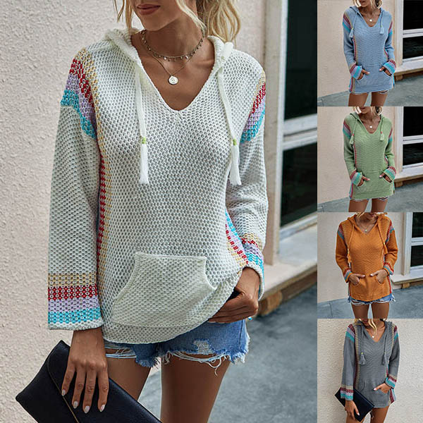 When you feel a little cold,this knit top is worth to arouse your attention. Contrast color design makes it look not so simple and dull. Finished with long sleeve and hooded silhouette,this knit top can keep you feeling warm and comfy while it exudes your style and personality. You can match with a jeans to start your wonderful day.