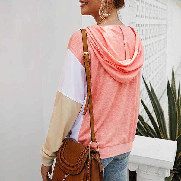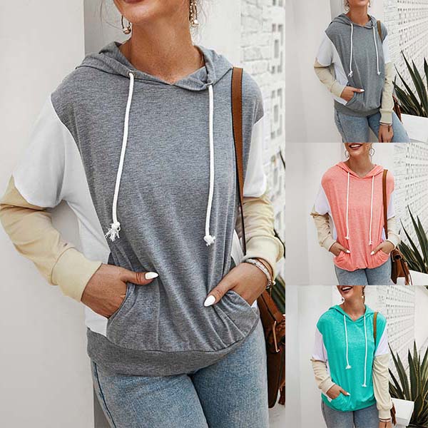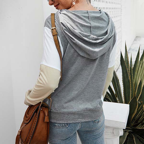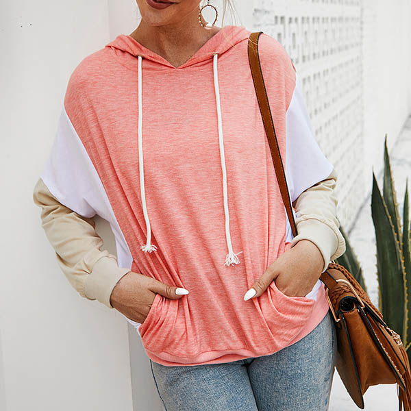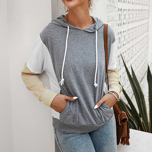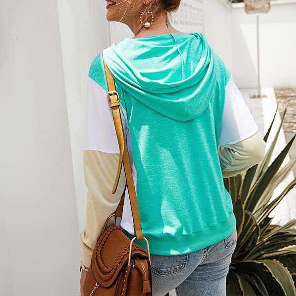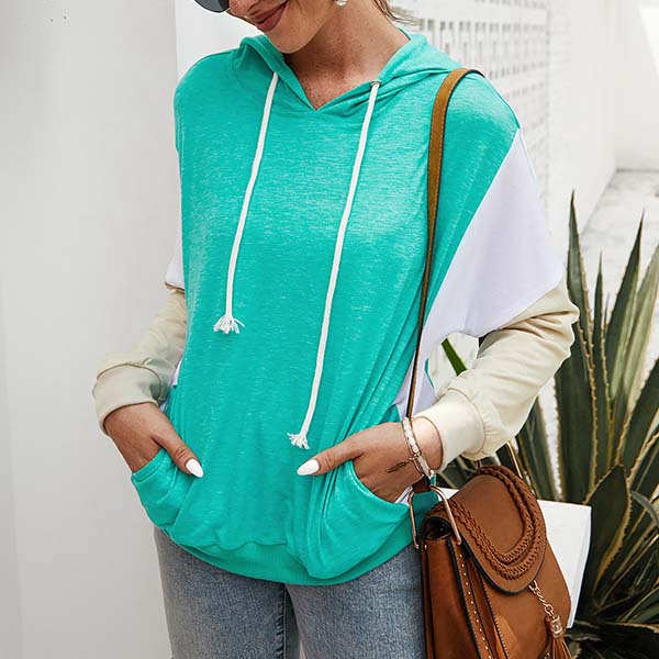 Fashion Contrast Color Long Sleeve Hooded Loose Sweatshirt