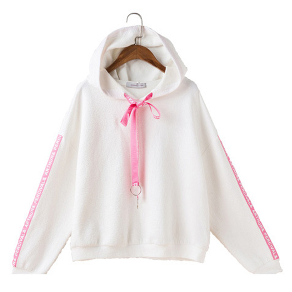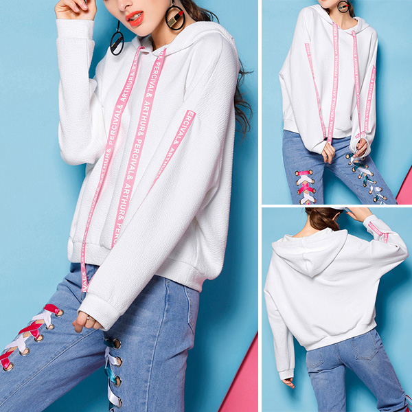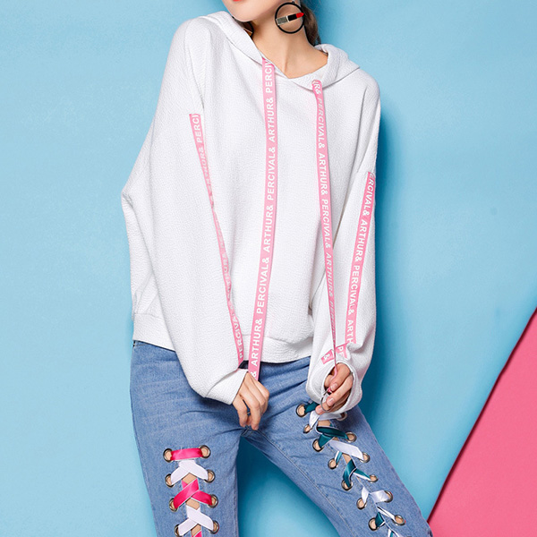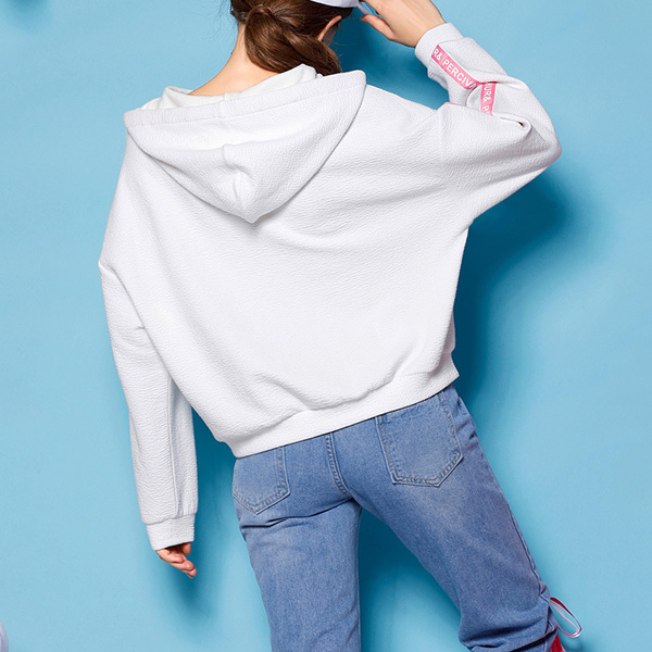 For a youthful and energetic style,you can opt for this sweatshirt. The white color tone decorated with pink patch design