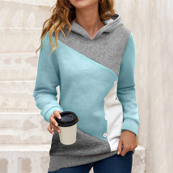 For a laid-back and fashionable autumn look,you can just have a try this sweatshirt. Contrast color element and front-button details make it look more attractive,while its soft and breathable fabric will give you a comfortable day. Perfect fit for matching with different style bottoms such as shorts,skirts,jeans and so on.