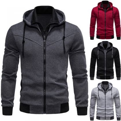 Mock two-piece style,this hoodie is a perfect way to show off your casual and stylish style. Contrast color style,with long sleeve,front zipper closure,slanted pockets and hooded design. During your weekend time or your off-duty time,let this piece accompany you.