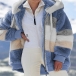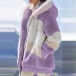 Fashion Contrast Color Long Sleeve Hooded Plush Coat