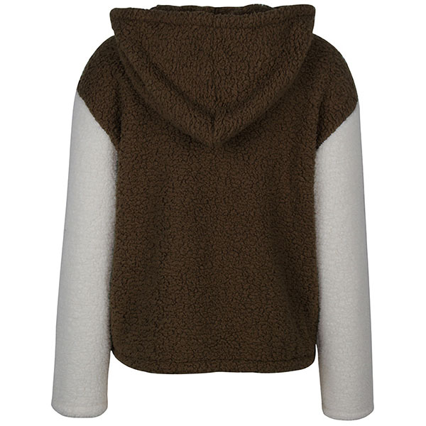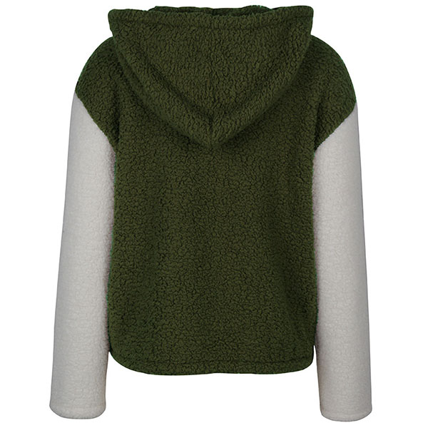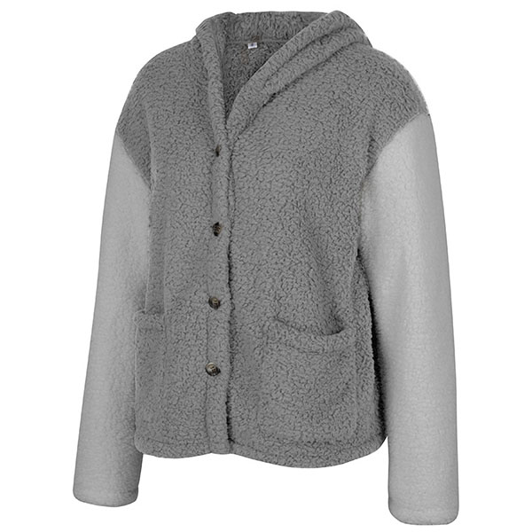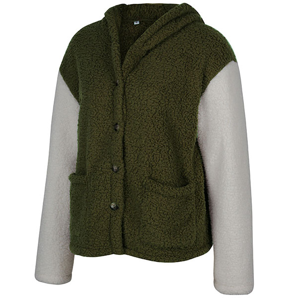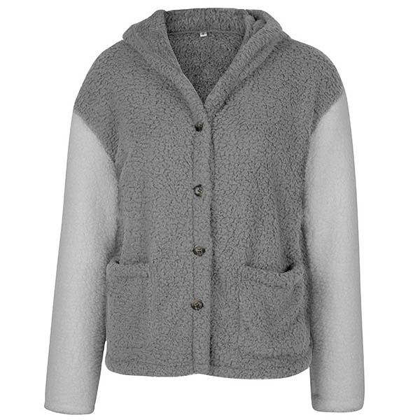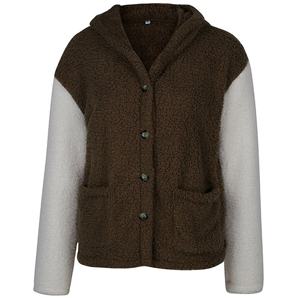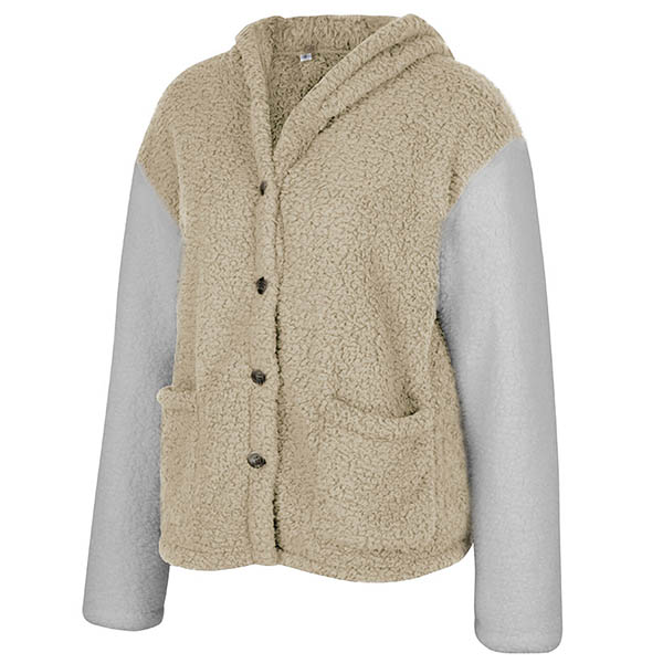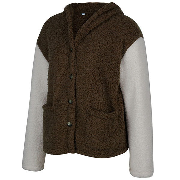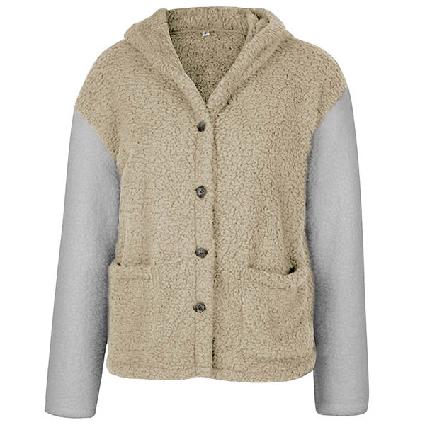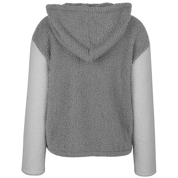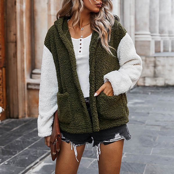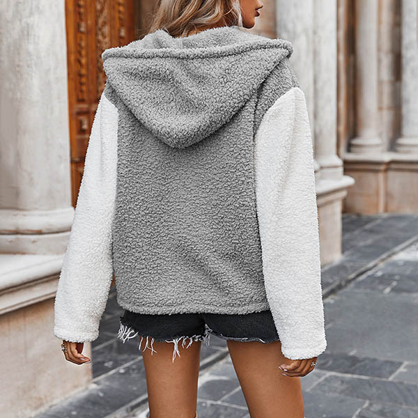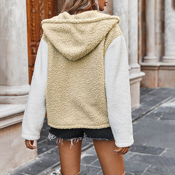 Fashion Contrast Color Long Sleeve Hooded Plush Coat