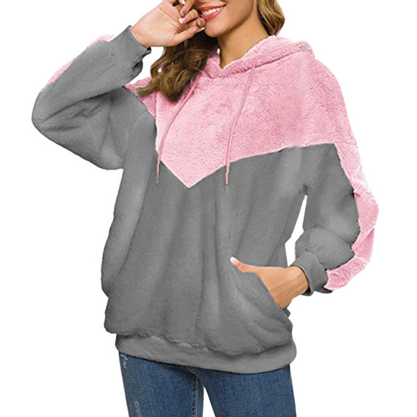 Fashion Contrast Color Long Sleeve Hooded Plush Sweatshirt