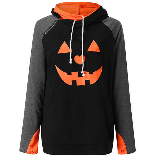 As for the coming All Saints' Day,this sweatshirt would be your wise choice. The pumpkin printed pattern design makes it more matching with the occasion,while the contrast color element design will add some extra charm. You can trust in this piece to have a happy and wonderful All Saints' Day!