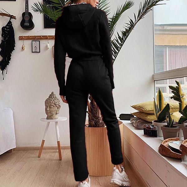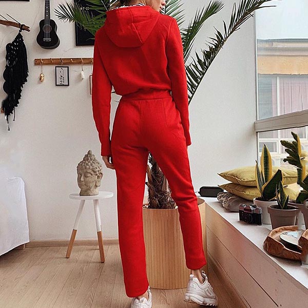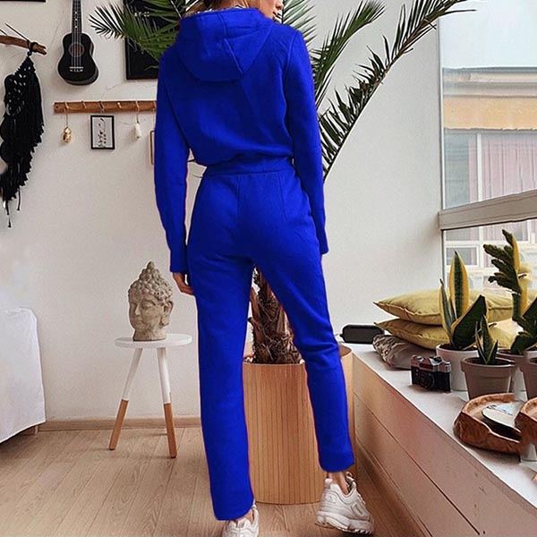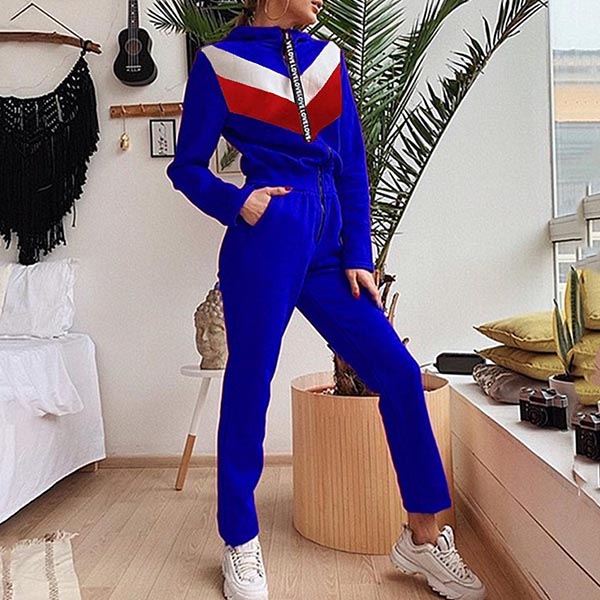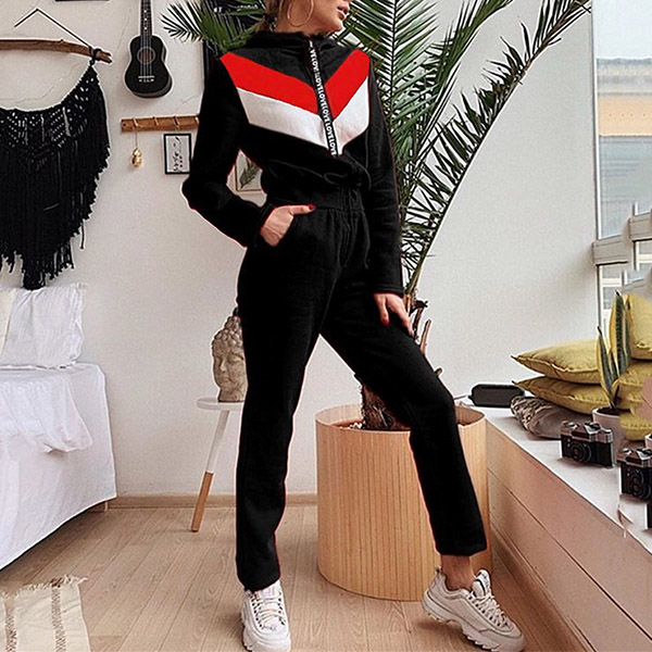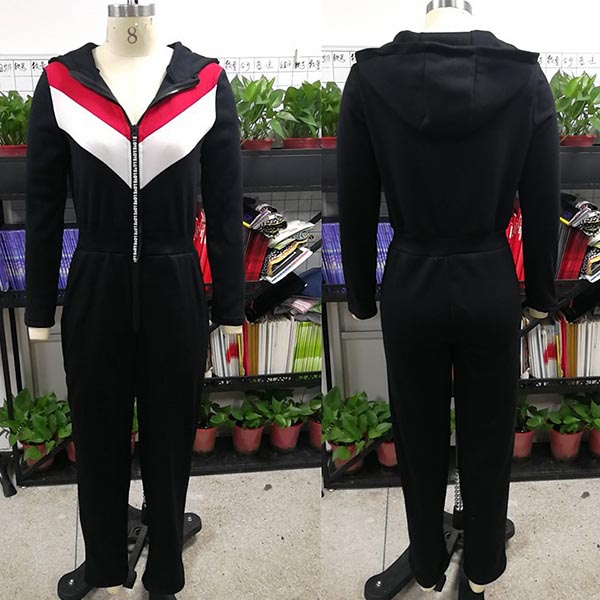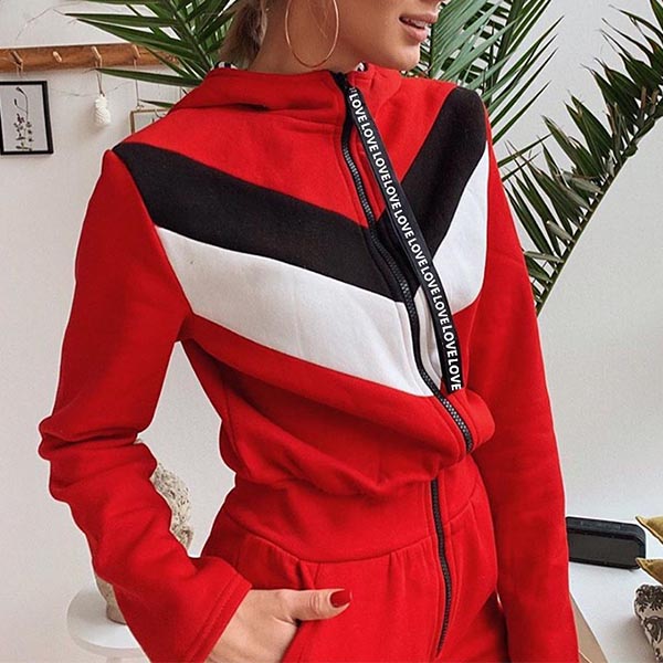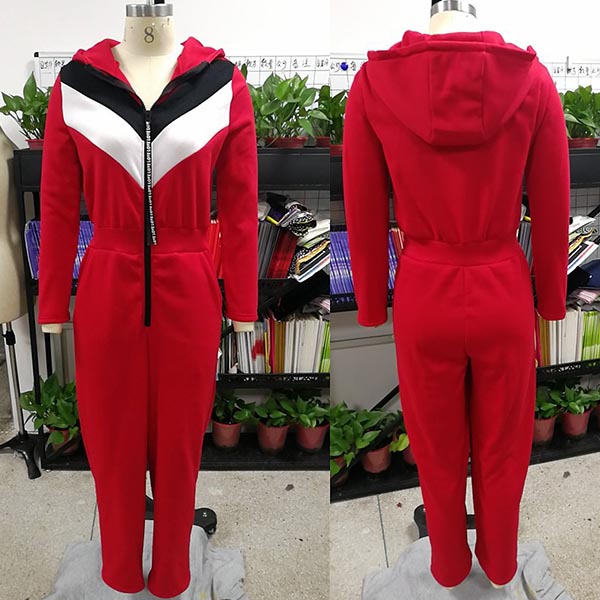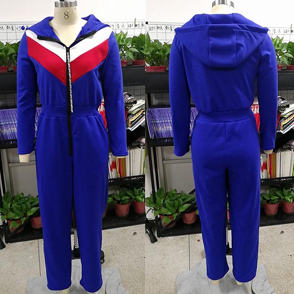Fashion Contrast Color Long Sleeve Hooded Sports Jumpsuit