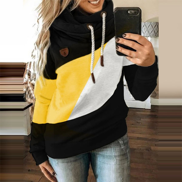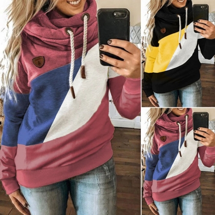 Fashion Contrast Color Long Sleeve Hooded Sweatshirt