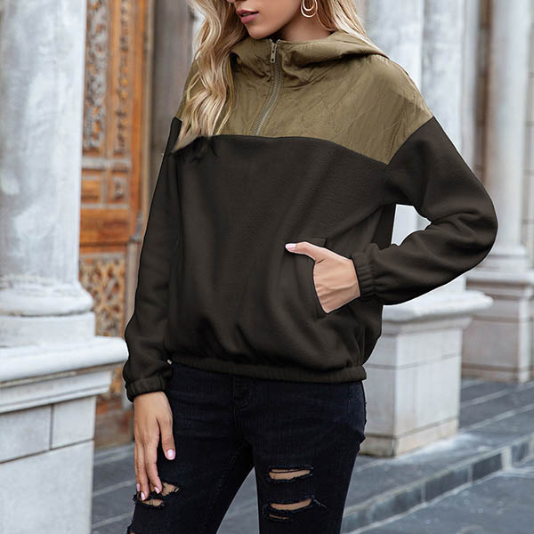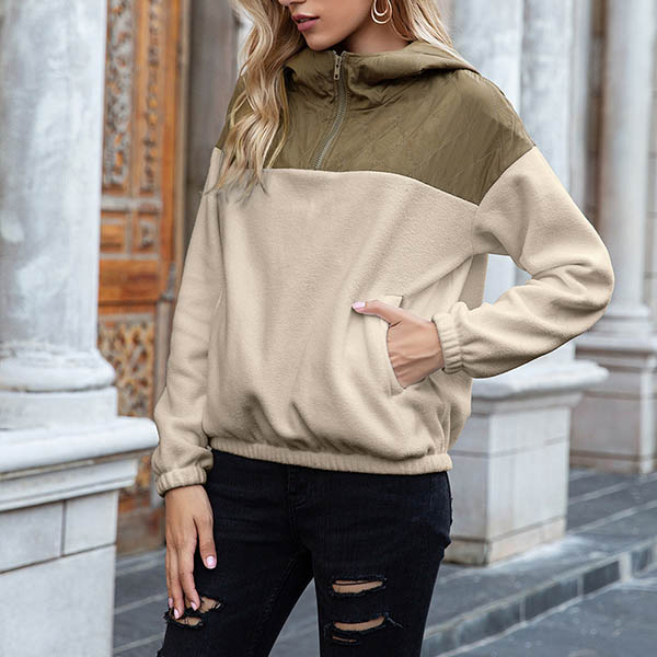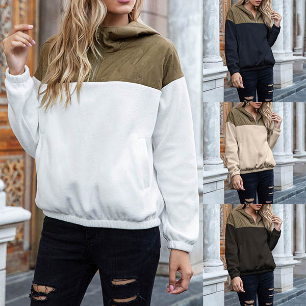 Fashion Contrast Color Long Sleeve Hooded Sweatshirt