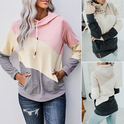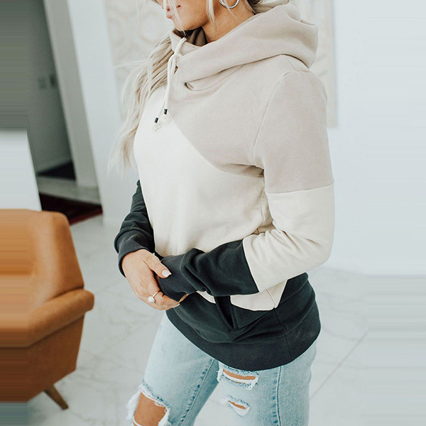 Fashion Contrast Color Long Sleeve Hooded Sweatshirt