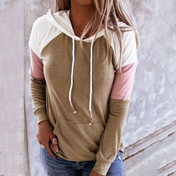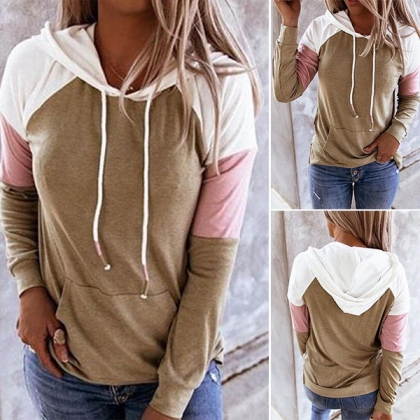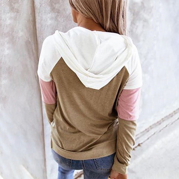 Fashion Contrast Color Long Sleeve Hooded Sweatshirt