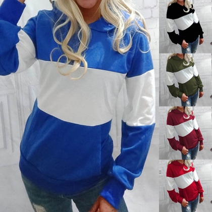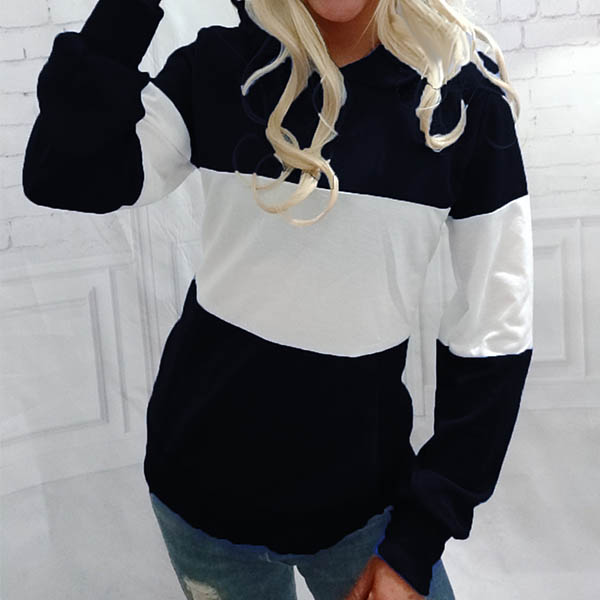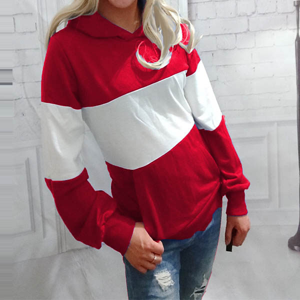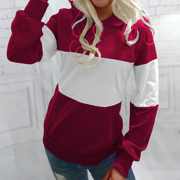 Fashion Contrast Color Long Sleeve Hooded Sweatshirt