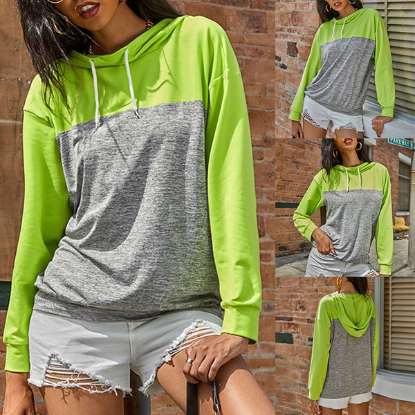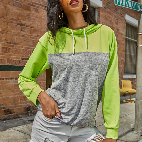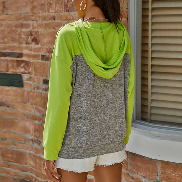 Fashion Contrast Color Long Sleeve Hooded Sweatshirt