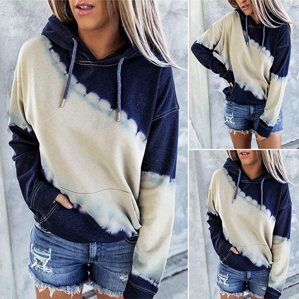 Fashion Contrast Color Long Sleeve Hooded Sweatshirt