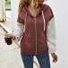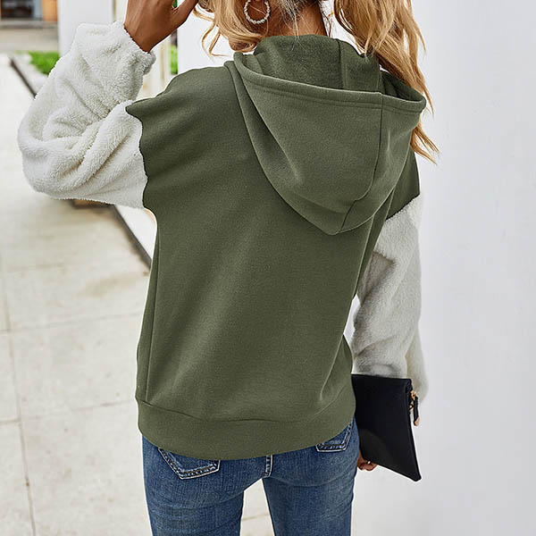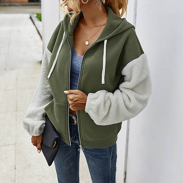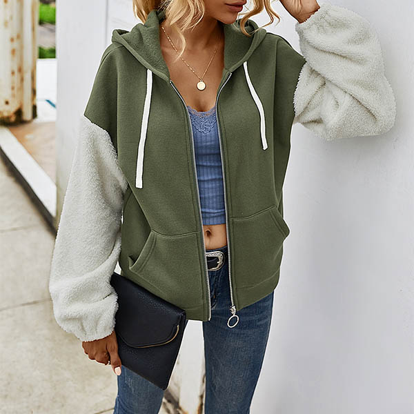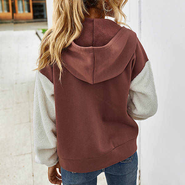 Fashion Contrast Color Long Sleeve Hooded Sweatshirt Coat