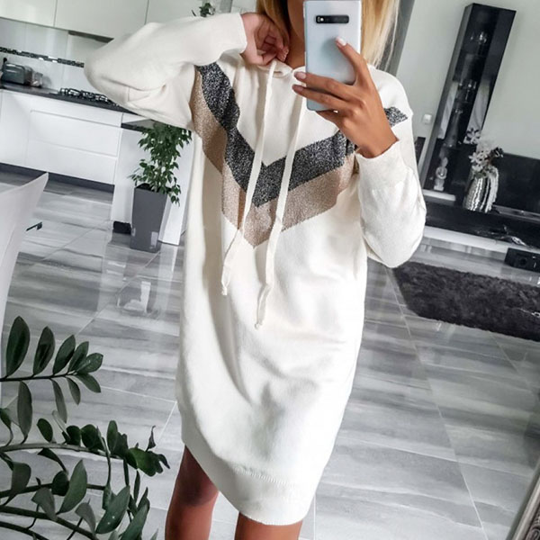 Embrace the autumn days with this cozy yet stylish sweatshirt dress. Contrast color design makes it look not so simple and dull. Finished with long sleeve and hooded silhouette,this piece also can give you a comfortable day. It can be matched with different style shoes to offer you different fashion styles.