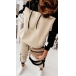 Fashion Contrast Color Long Sleeve Hooded Sweatshirt + Pants Sports Suit