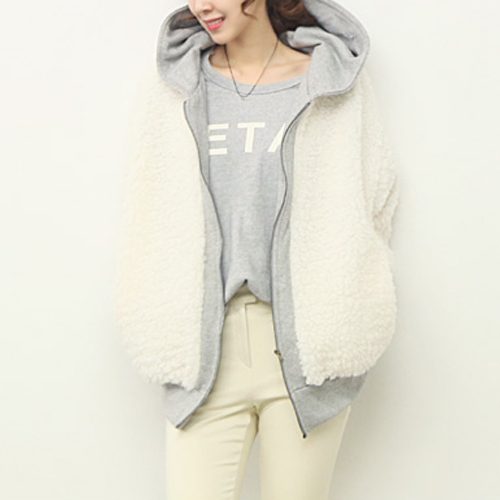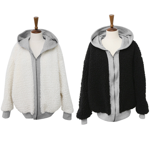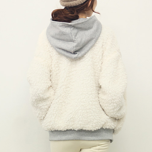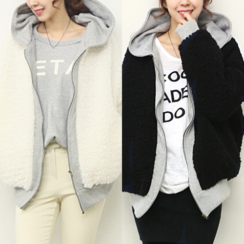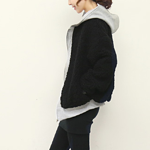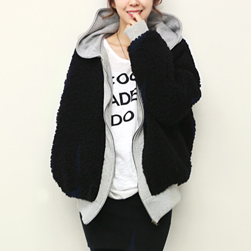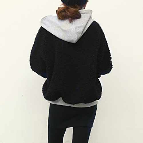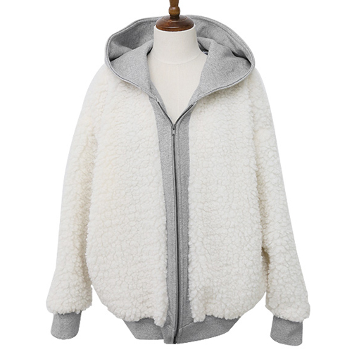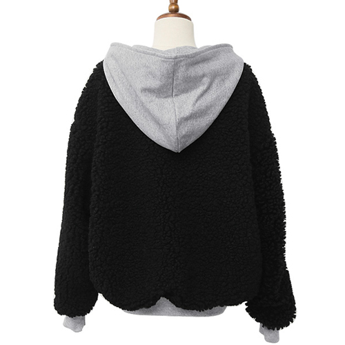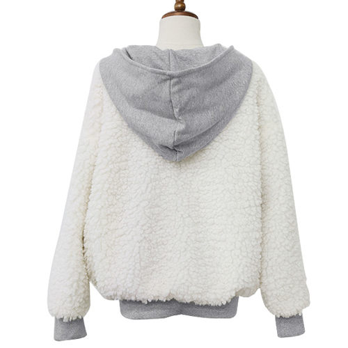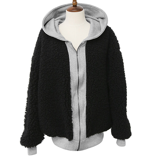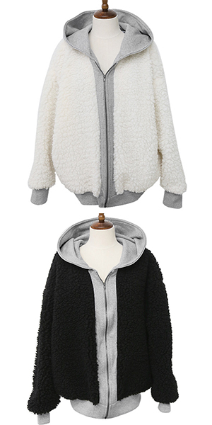 Contrast color style,with long sleeve,front zipper closure and hooded design. It is a