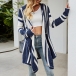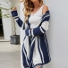 Fashion Contrast Color Long Sleeve Irregular Hem Hooded Knit Cardigan