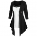 Fashion Contrast Color Long Sleeve Irregular Hem Mock Two-piece Top
