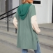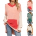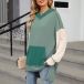 Stay cozy and stylish in this fashionable hooded sweatshirt. The contrast color design adds a trendy and eye-catching element to the sweatshirt, perfect for adding a pop of color to your outfit. We could pair it with leggings or jeans for a relaxed and comfortable look, or layer it over a dress for a sporty and chic ensemble.
