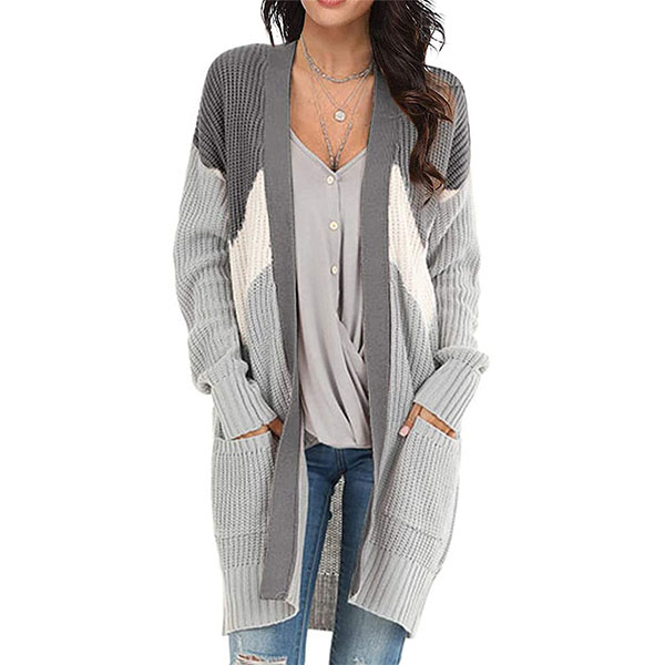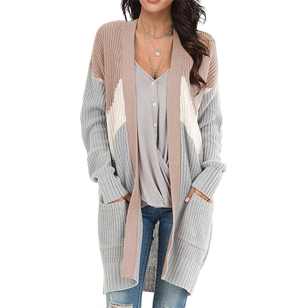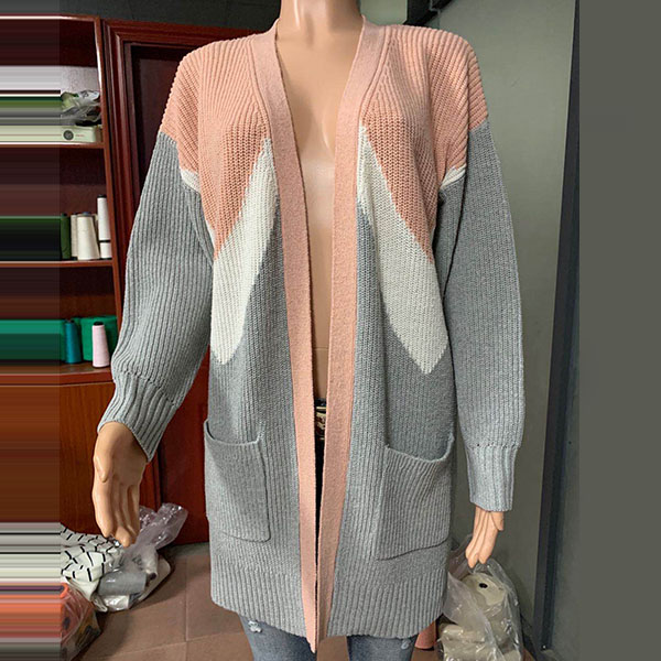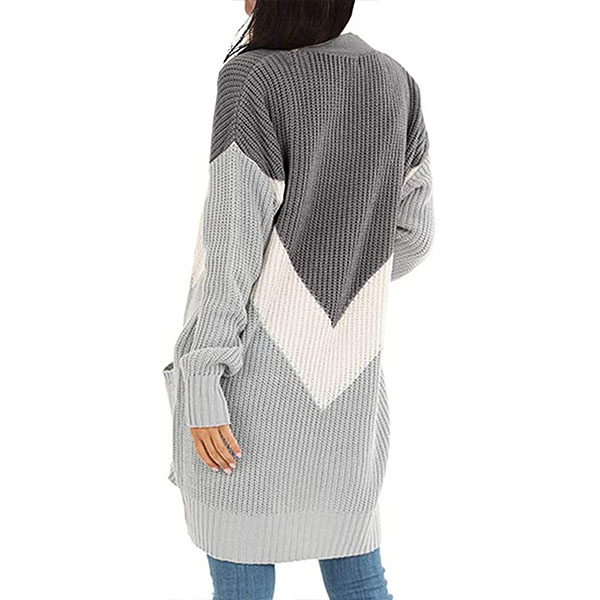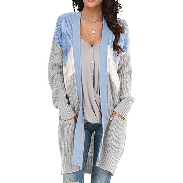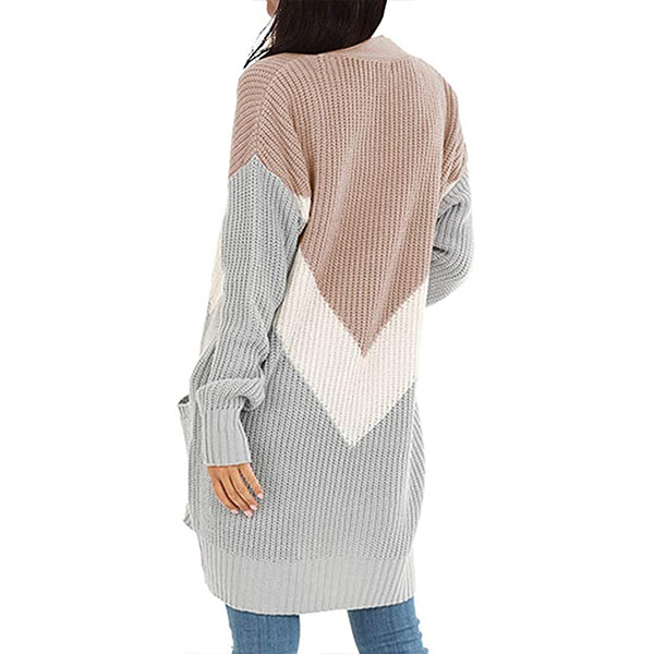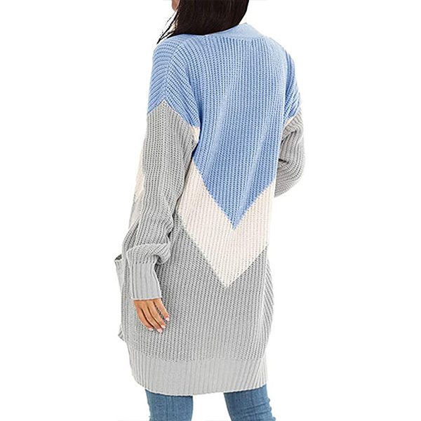 Fashion Contrast Color Long Sleeve Knit Cardigan
