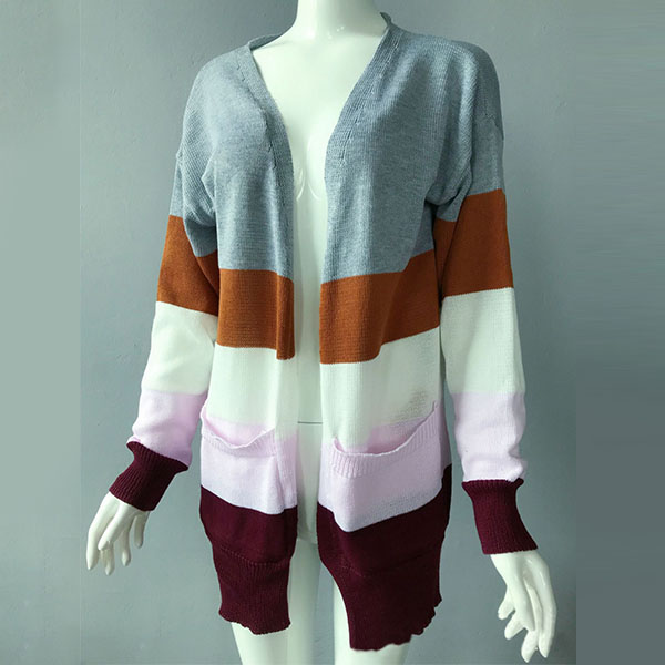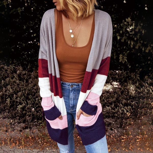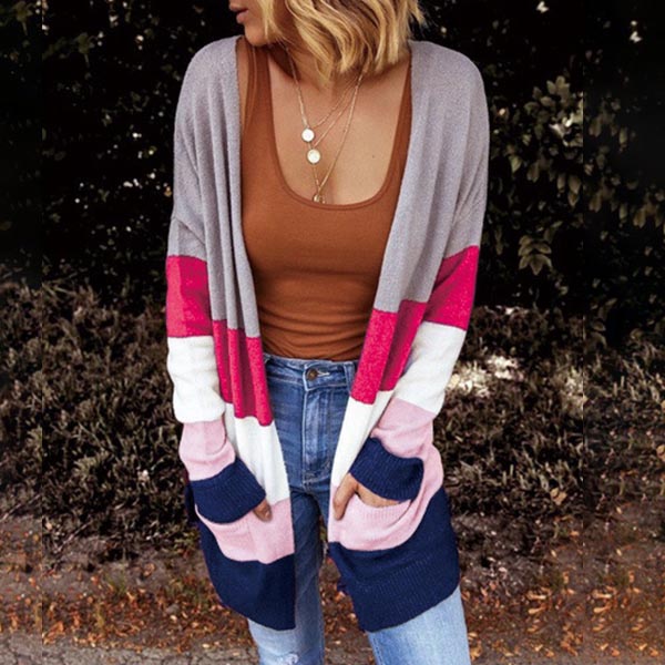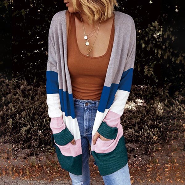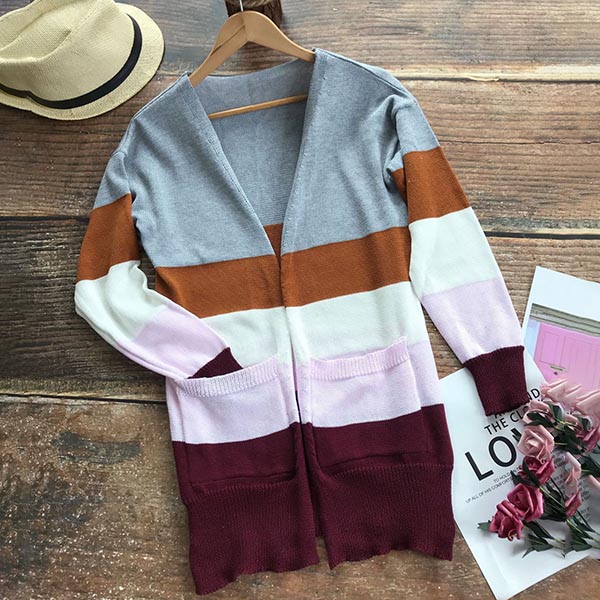 Fashion Contrast Color Long Sleeve Knit Cardigan