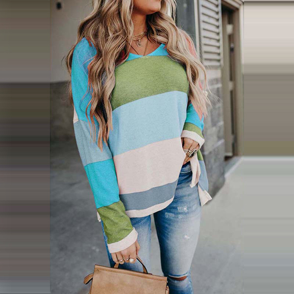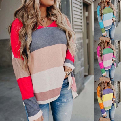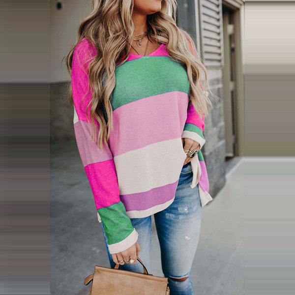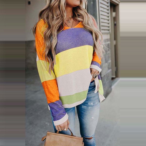 Add some colorful vibes to your wardrobe with this wonderful knit top. Contrast color element design makes this piece look so stylish and attractive,while its soft and breathable fabric can ensure you a comfortable day. So just match it with your favourite pants to achieve for a laid-back and fashionable daily look.