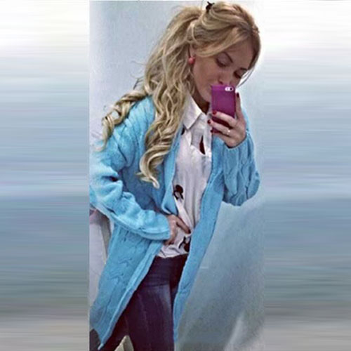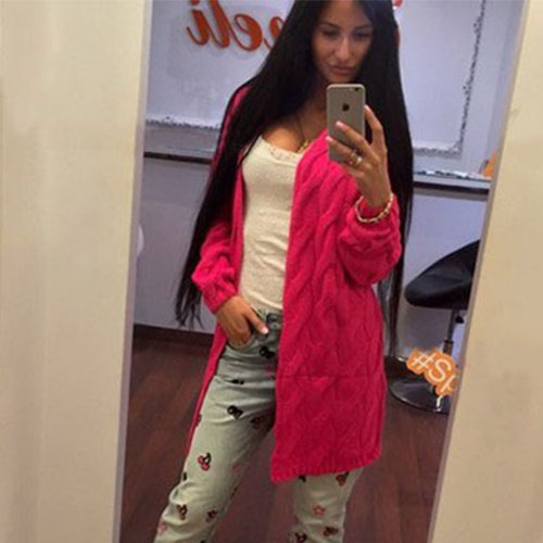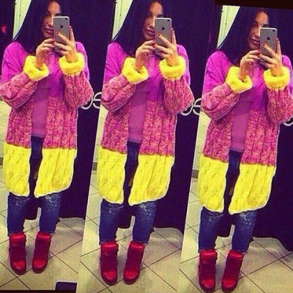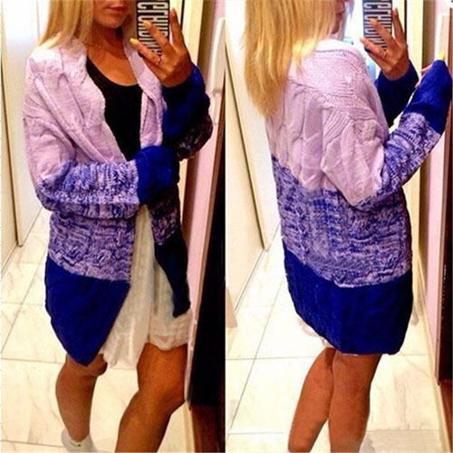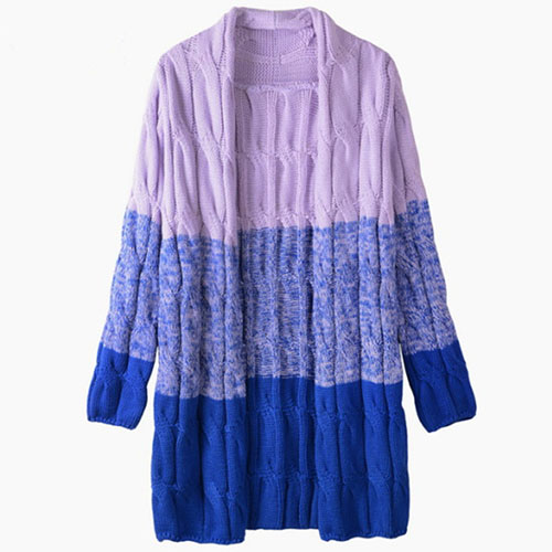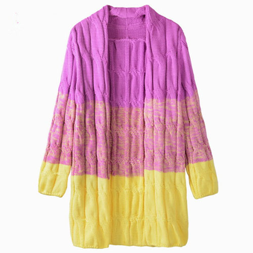 Fashion Contrast Color Long Sleeve Knitted Cardigan